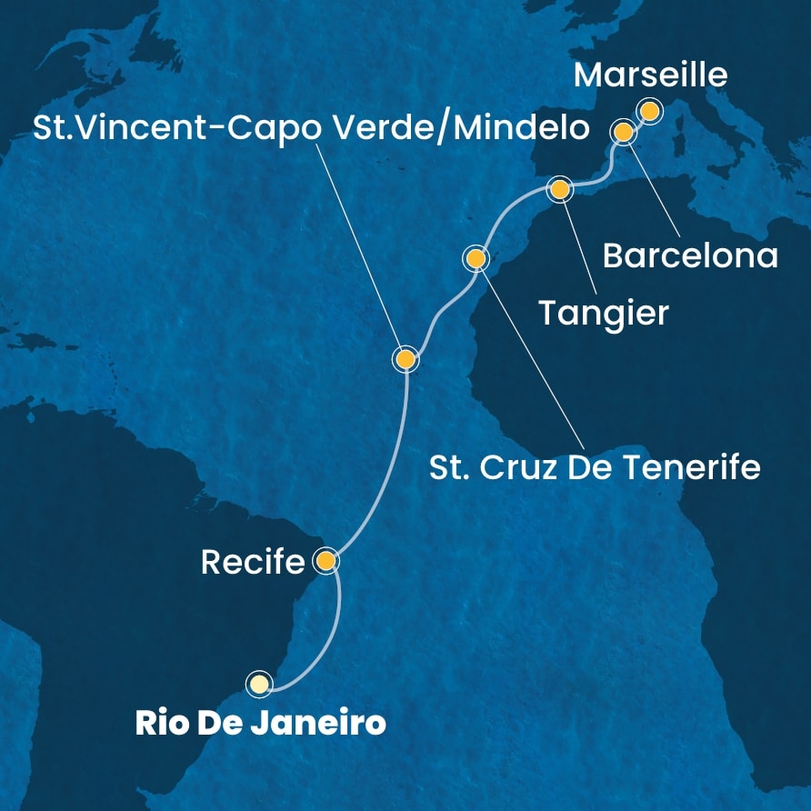 Costa Favolosa - Brazílie, Kapverdy, Španělsko, Maroko, Francie (z Rio de Janeira)