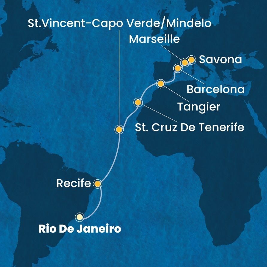 Costa Favolosa - Brazílie, Kapverdy, Španělsko, Maroko, Francie, ... (z Rio de Janeira)
