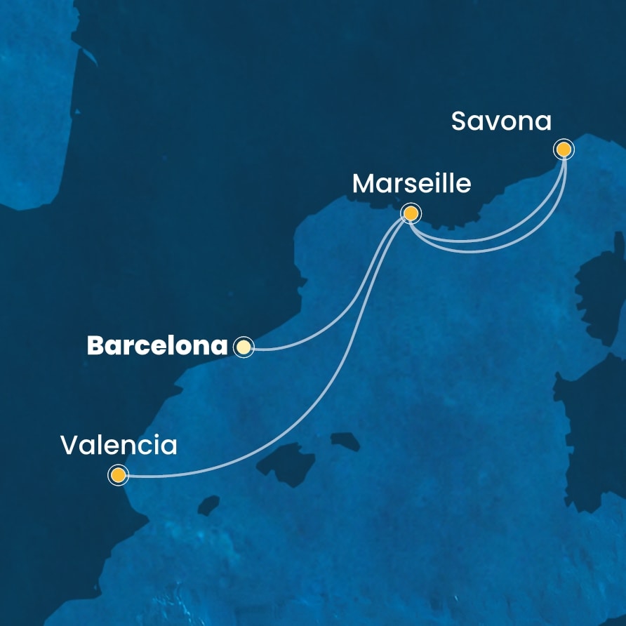 Jídlo a pití: Na palubě je 12 barů a 6 restaurací. V hlavní restauraci ochutnejte menu od šéfkuchařů s Michellinskými hvězdami, vyražte na drinky do Aperol Spritz baru nebo na ochutnávku vín do Camelot Wine baru.