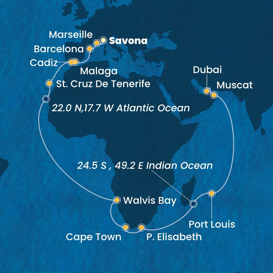 Navíc, když se lety zpozdí, nebo zruší, tak lodní společnost navrhne náhradu, tak abyste se na svojí plavbu dostali. Fly&Cruise je k dispozici pouze u vybraných plaveb, nabídku předložíme na vyžádání.