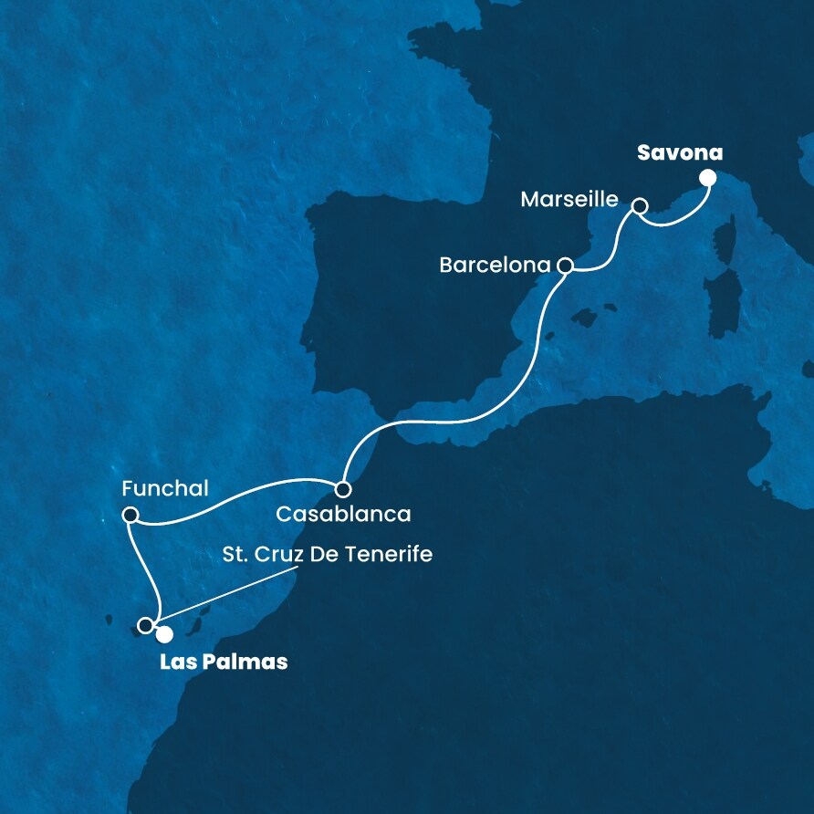 Jídlo a pití: Na palubě je 10 barů a 5 restaurací. V hlavní restauraci ochutnejte menu od šéfkuchařů s Michellinskými hvězdami a vyražte na ochutnávku vín do Conte Roso Wine baru.