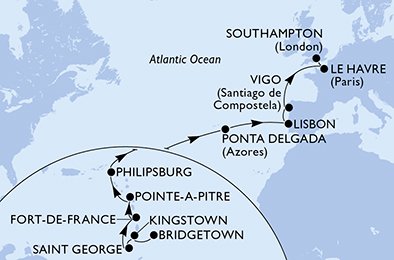 Doprava do přístavu je vlastní. V případě zájmu pomůžeme zajistit dopravu. V některých přístavech je možné zarezervovat parking vašeho vozu po dobu plavby. Lodní společnost nabízí balíček MSC Hotels & Flights, který zahrnuje letenku, ubytování před plavbou, zpáteční transfery a plavbu. Navíc, když se lety zpozdí, nebo zruší, tak lodní společnost navrhne náhradu, tak abyste se na svojí plavbu dostali. MSC Hotels & Flights je k dispozici pouze u vybraných plaveb, nabídku předložíme na vyžádání.