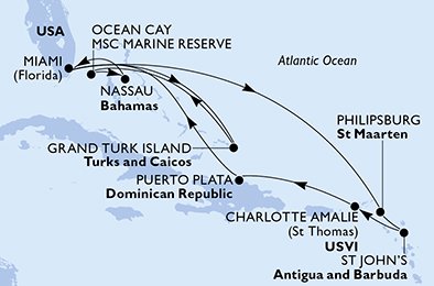 MSC Meraviglia - USA, Turks a Caicos, Bahamy, Nizozemské Antily, Antigua a Barbuda, ... (z Miami) - Cruise Club