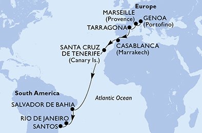 Jedná se o vlajkovou loď třídy Musica, tyto středně velké lodě mají inovativní design, nabízí více prostoru a eleganci na každém kroku. Dáte si kávu ve třípatrovém atrium s vodopádem, užijete si velké bazény s LED obrazovkou na horní palubě a jedinečnou zábavu v ohromném divadle La Scala. Těšte se na plavbu s elegantní lodí Musica!