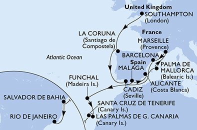 MSC Virtuosa - Velká Británie, Španělsko, Francie, Portugalsko, Brazílie (ze Southamptonu)